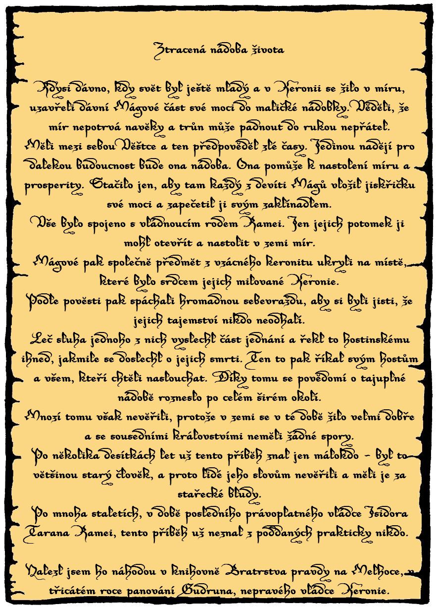 Co měly všechny pergameny společné, bylo to, že se odehrávaly ještě v době panování rodu Ramei a že je našel a sepsal Morcant Veles.